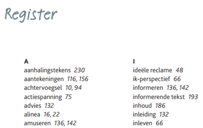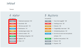 • Process the themes and courses in order of page number in the table of contents. Write out the colored words with a colon in between.