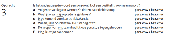 <p type="precedingEmptyline">Is het onderstreepte woord een persoonlijk of een bezittelijk voornaamwoord?</p>