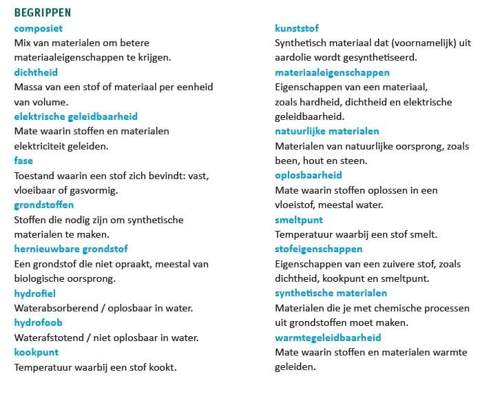 <dd>Eigenschappen van een materiaal, zoals hardheid, dichtheid en elektrische geleidbaarheid.</dd>