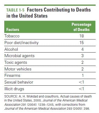 <title>TABLE 1-5 Factors Contributing to Deaths in the United States</title>