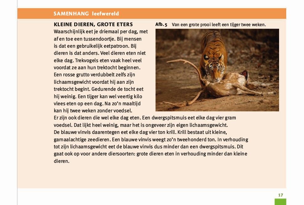 <caption>Afb. 5 Van een grote prooi leeft een tijger twee weken. </caption>